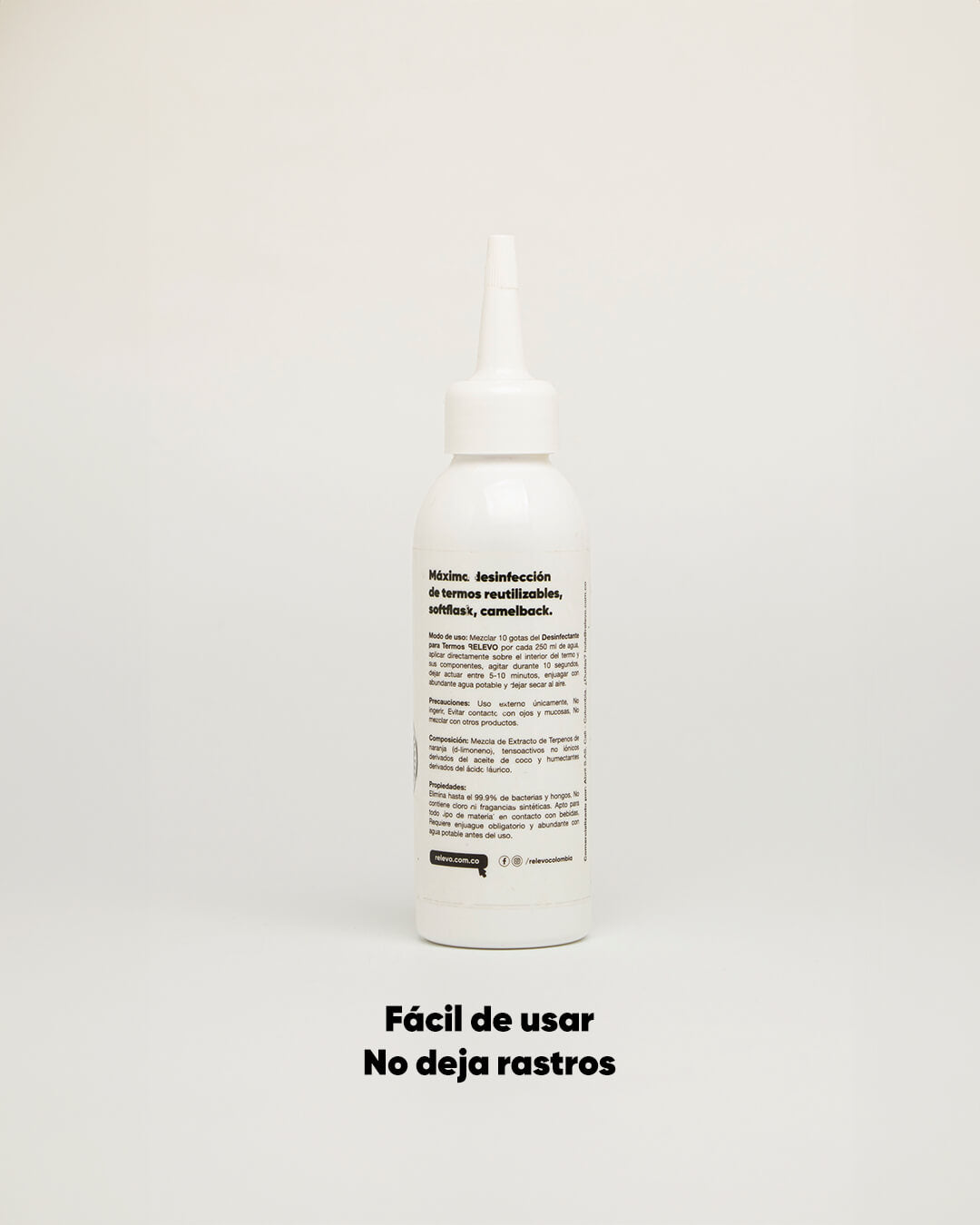 Lavar tu termo con el Desinfectante para Termos de Relevo garantiza la eliminación del 99% de bacterias y hongos incluyendo la Salmonella y E.Coli.