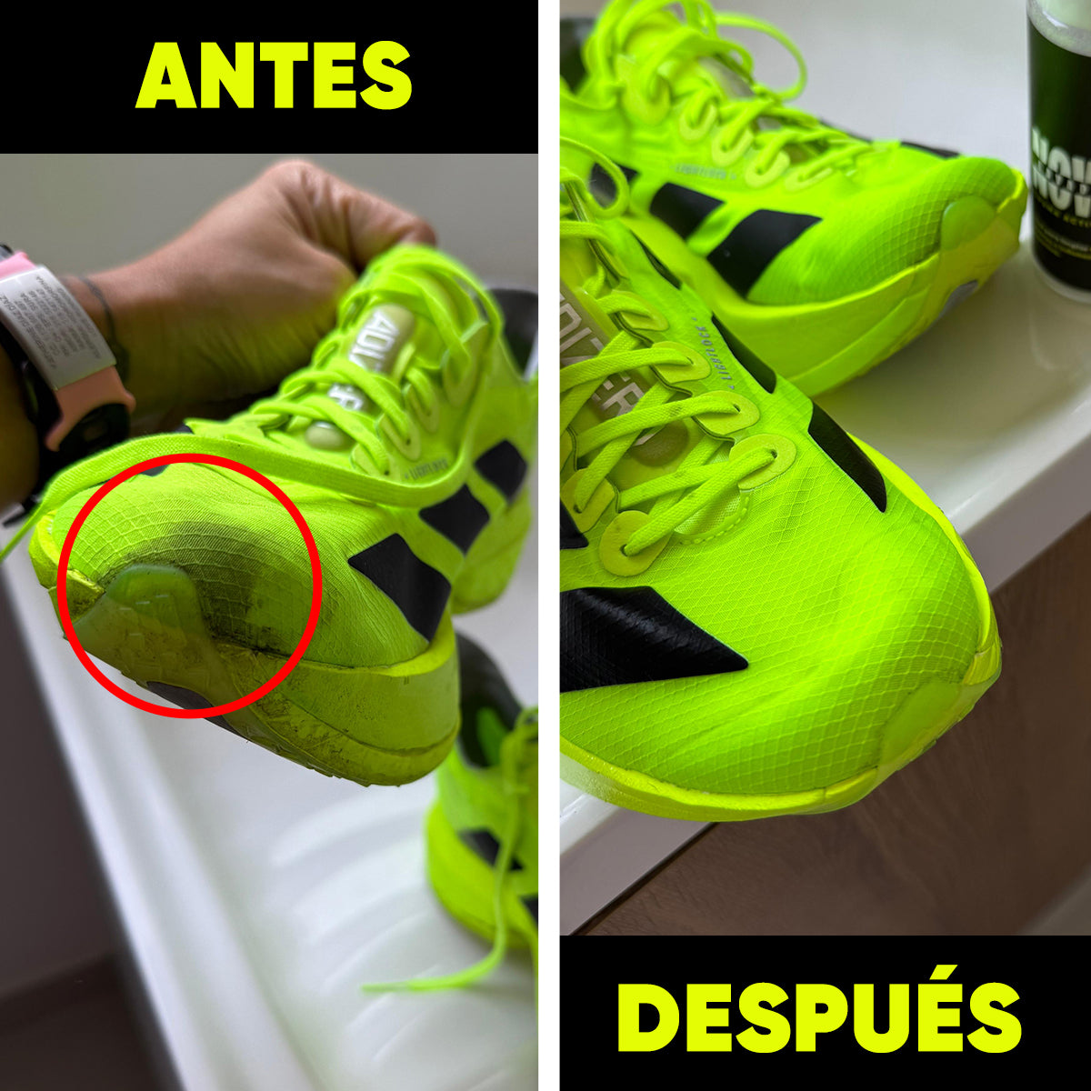 No obstante, en materiales delicados o de origen natural como gamuza, nubuck, cuero natural o acabados especiales, el resultado puede variar según factores como el tipo de material, el nivel de suciedad, el tiempo de impregnación y el uso previo del producto.